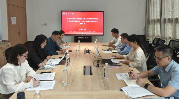 根据《关于组织开展2024年度苏州城市学院太湖研究课题征集工作的通知》,经个人申报、太湖研究院(筹)初审、专家评审,太湖研究课题正式立项。为进一步落实《环太湖发展蓝皮书(2025)》编纂工作、确保2024年度太湖研究课题顺利推进,太湖研究院(筹)邀请立项课题负责人参加蓝皮书启动会,并于10月底组织中期汇报。汇报由太湖研究院(筹)副院长陈璇主持,各课题负责同志及核心研究团队成员出席会议。