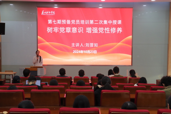 10月23日下午,我校第七期预备党员培训第二次集中授课在3-101教室举行。本次授课由马克思主义学院刘晋如老师主讲,主题为《树牢党章意识 增强党性修养》。此次活动由党校老师饶琼主持,旨在进一步深化学员对党的二十大党章的理解和认识,增强党性修养。