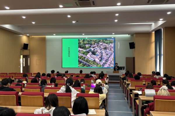 陆雪梅副院长回溯了苏州的起源与发展历程,以苏州碑刻博物馆的镇馆之宝“平江图”碑为引娓娓道出“平江图”的前世,又依据“平江图”描绘的苏州古城风貌,解读其沧桑演变,在历史与现实的交汇中,细细品读苏州千余年来的变与不变、园林古迹的繁与盛;她着重介绍了贝聿铭老先生设计的苏州博物馆,以时间为序呈现一件件精美绝伦的馆藏文物,讲述一个个美丽动人的故事,带领师生们穿越时空,与历史对话,生动呈现出苏州城市发展的清晰历史脉络与深厚文化渊源,诠释了苏州“鱼米之乡”“文物之邦”“人间天堂”等美誉的由来。
