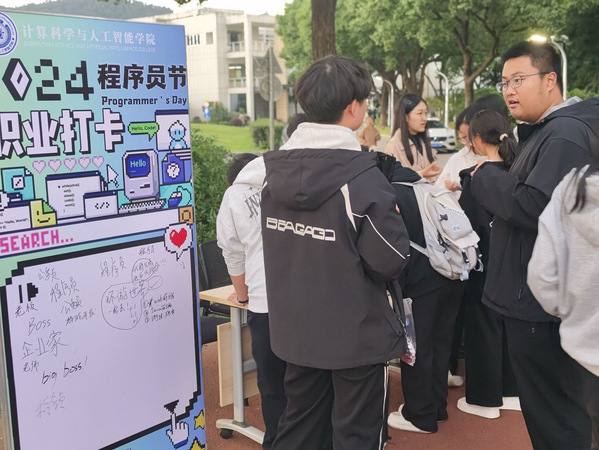 10月24日,计算科学与人工智能学院在数字化中心前广场举办“科创文化节之1024程序员节职业打卡活动”。本次活动旨在为广大学子提供一个展示自我、规划职业生涯的平台,吸引了大批充满激情与梦想的大学生积极参与。