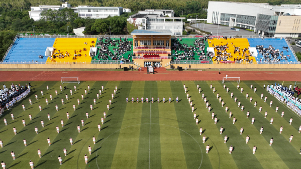 各方队依次入场,并带来各具特色的方阵表演,他们精神饱满、热情昂扬,彰显苏城学子“爱运动,爱城院,爱未来”的青春风采。伴随着雄壮的《义勇军进行曲》响起,全体肃立致敬,齐唱国歌,鲜艳的五星红旗冉冉升起。
