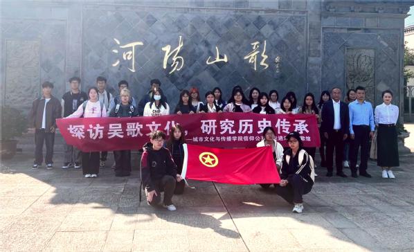 为进一步贯彻落实习近平文化思想,践行习近平总书记在苏州考察时关于深入推进中华民族现代文明建设的重要指示精神,聚焦吴歌这一苏州国家级非物质文化遗产项目,汇聚育人合力搭建特色“信仰公开课”平台,加深苏城学子对传统文化的认知与理解,10月29日,城市文化与传播学院团委书记孙兰镇、团委副书记徐宁带领30余名学生代表与学院学生第三党支部党员齐聚张家港市河阳山歌馆,依托吴歌工作坊开展《探访吴歌文化,研究历史传承》校级信仰公开课。出席本次信仰公开课的嘉宾有国家级非物质文化遗产——河阳山歌项目江苏省级代表性传承人尹丽芬、苏州市级代表性传承人陈社珍、张家港市级代表性传承人龚晓东、张家港市级代表性传承人骆小妹。
