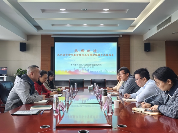 虞晓明详细介绍了吴中区产业结构、用工需求、技能培训以及就创业相关政策,并表示将进一步发挥好人社部门“桥梁纽带”作用,帮助企业和高校实现“双向奔赴”。李惠娟代表学院向吴中区人社局长期以来给予学院的关心表达了诚挚感谢,并从人才培养模式、学科专业特色以及未来发展方向等方面介绍了学院的基本情况,她表示学院高度重视“政校行企”育人链条建设,不断推进人才培养供给侧与企业需求侧的有效衔接,希望与吴中区人社局“携手同行”,探索校地合作新模式新路径。