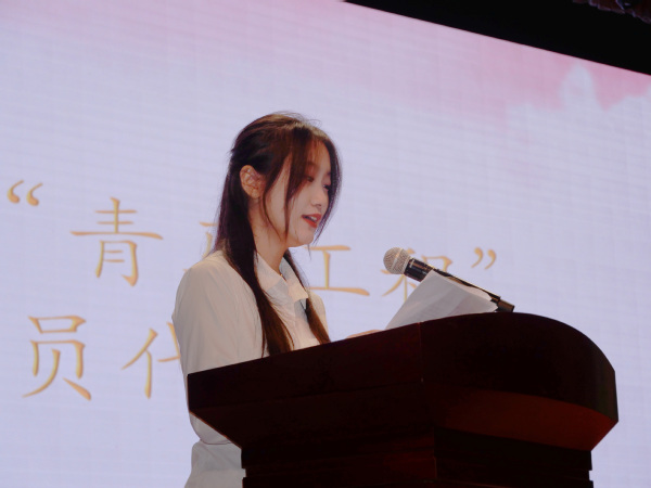 第一期“青马工程”优秀学员代表王珂涵发言,分享在青马工程中的成长与收获。她表示:青马工程是锤炼意志、提升能力的重要平台,今后会继续秉承青马工程的精神,努力学习、积极实践、不断创新,为党的事业贡献自己的力量,成为一名优秀的青年马克思主义者。