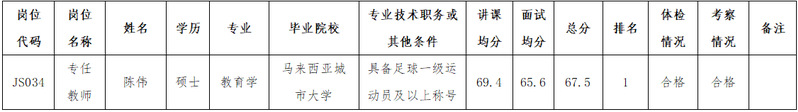 根据《苏州城市学院2024年度下半年高层次人才招聘公告》,经过试讲、面试考核、资格复审、心理测试、体检、政审等程序,拟录用以下1名同志,现公示如下:
