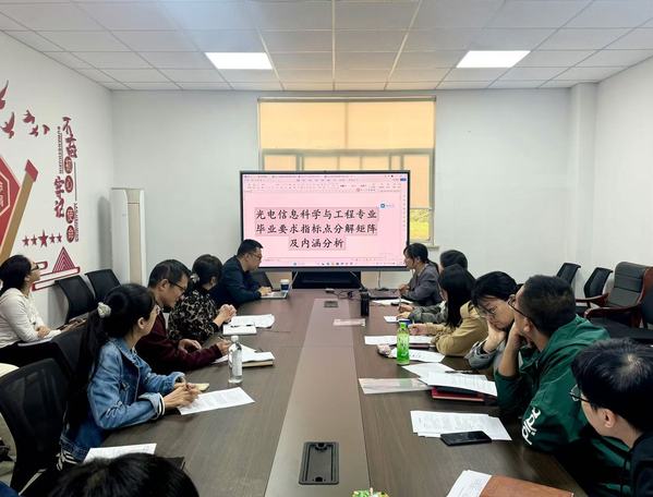 研讨会上,光电信息工程系系主任吴丹解读了光电信息科学与工程专业的12项毕业要求,并对每项要求进行了详细的指标点分解和内涵分析。这些毕业要求涵盖了工程知识、问题分析、设计/开发解决方案、研究、使用现代工具、工程与社会、环境和可持续发展、职业规范、个人和团队、沟通、项目管理以及终身学习等多个方面。通过对这些要求的深入分析,与会教师明确了每个指标点的具体内涵和教学目标以及后续的教学活动和课程改革的方向。