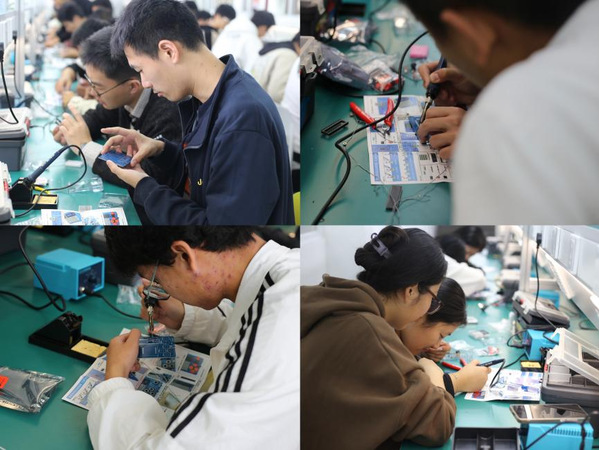 此次活动重点聚焦于插件元器件焊接和设备组装调试,社团成员向同学们详尽介绍了焊接工具的选择、焊接类型、安全注意事项以及焊接方法等。在焊接活动进行之时,同学们纷纷展现了出色的动手实操能力,在团队中齐心协力、默契配合,将锡丝与焊盘紧密的焊接在一起。