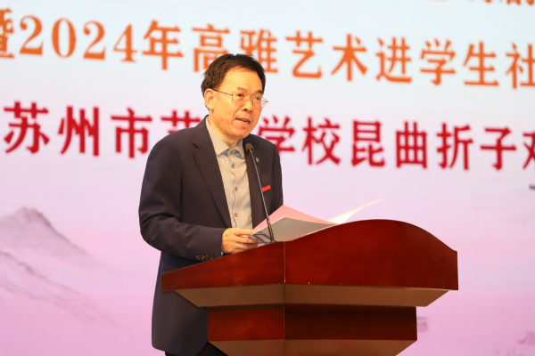 高雷在致辞中指出,戏曲进校园活动、高雅艺术进学生社区活动在古老的苏州曲艺戏剧非遗文化和充满朝气的现代校园之间搭建了一座坚固而通畅的桥梁,让更多大学生能够跨越时空的界限,走进戏曲的奇妙世界,感受其魅力,进而成为传承与弘扬苏州曲艺戏剧文化的新生力量。他希望通过大家共同努力,把曲艺戏剧类非遗联合体打造成昆曲和评弹优秀人才培养基地和苏州曲艺戏剧文化传承与创新基地。