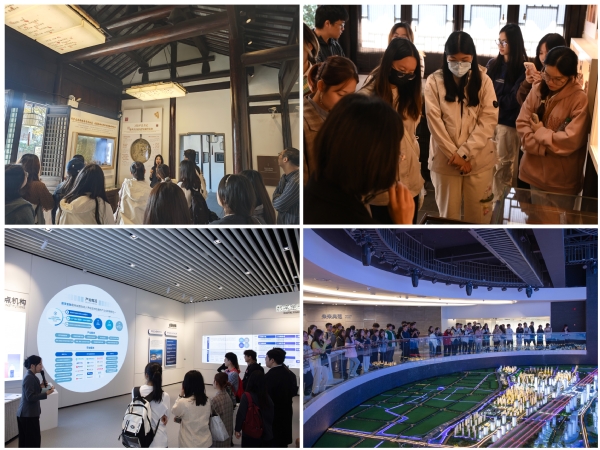 同学们先后参观了冯梦龙村和长三角国际研发社区展示中心,冯梦龙村以自然资源为依托,以文化振兴为核心,持续拓展梦龙文化品牌,全面激发基层青年活力,帮助学生近距离感知相城的文化底蕴;长三角国际研发社区展示中心聚焦相城区发展历程、区位交通、战略优势、空间规划、新兴产业、功能配套等基本情况,是相城区集聚研发产业机构、构建研发生态系统、推动技术成果转化的新型专业研发产业园,帮助学生全方位感知相城的核心竞争力和吸引力。