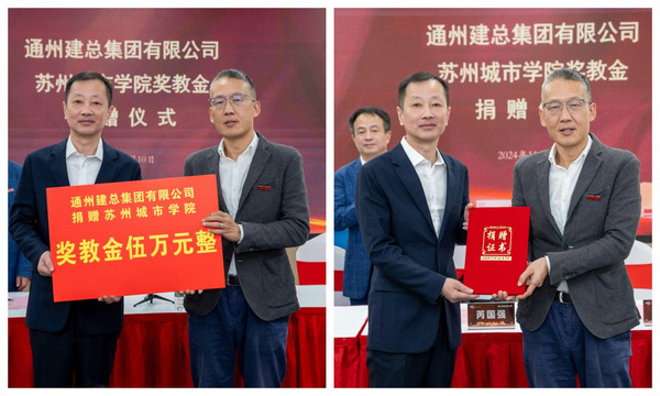 在开班典礼上,张红军、黄涧秋分别代表通州建总集团和我校,举行了奖教金的捐赠仪式。