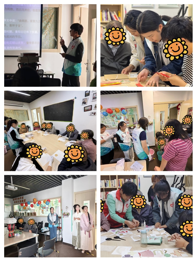 竹编蕴藏历史,拨挑制画重阳。志愿者用生动的讲述串起“重阳”的历史,细心指导精康人员竹编画;扎染艺术融秋情,匠心独韵绘斑斓,我们共同感受富有魅力的织染文化与民情风俗;汉服折纸承古韵,折叠塑造华裳形,志愿者们讲述汉服历史文脉,与精康人员共绘折纸汉服梦。