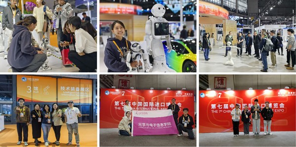 第七届中国国际进口博览会11月5日至10日在上海举办,我校光学与电子信息学院人形机器人智汇公社受软银机器人公司邀请参展,展示学生们依托产教融合实践取得的创新成果,在国际舞台上展现学以致用的专业风采。
