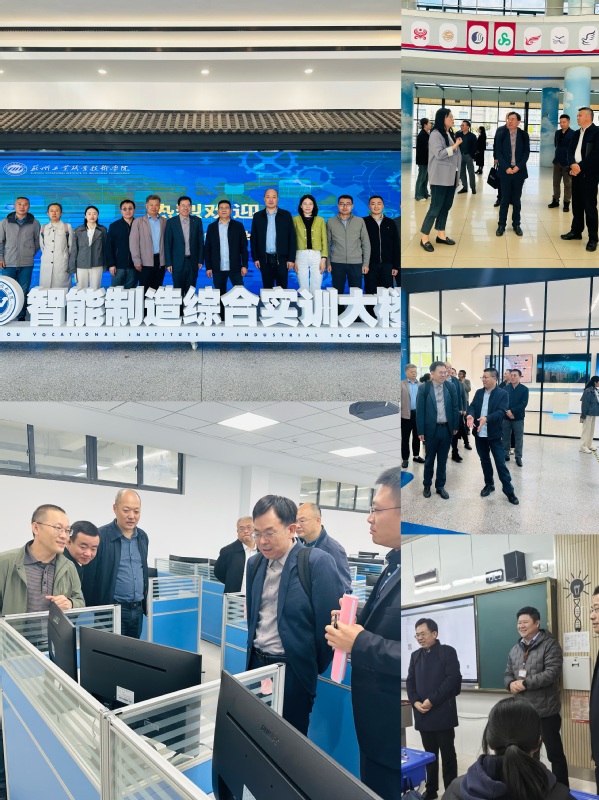 为充分了解项目班学生实习实践情况,提高技术技能水平。我校一行实地观摩合作学校实验室、实训基地、学生作品展和上课情况。在工业职业技术学院参观智能制造综合实训大楼,沉浸式感受小型智能生产线,包括数控加工、协作机器人、AGV小车、RFID系统等教学设施、软件;在苏州信息职业技术学院深入华为云机房,了解虚拟仿真技术在教学实践中的应用;在苏州高等职业技术学校实地走进“5+2”现代通信技术和“5+2”机电一体化技术教学楼,观看教师授课状态及学生学习情况,项目班同学认真学习的态度、热情活泼的性格、知礼明德行为举止深深感染调研人员;在苏州建设交通高等职业技术学校,观看环境艺术工程学院建筑室内设计专业学生制作的精美展册,如文化主题书店空间设计方案、现代风格别墅室内设计;在苏州旅游与财经高等职业技术学校深入实训场地,参观空乘专业模拟机舱,了解专业实践和技能培训相关内容。