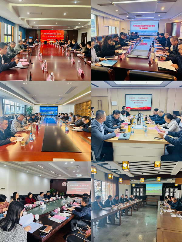 高雷一行分别走访了苏州工业职业技术学院、苏州信息职业技术学院、苏州经贸职业技术学院、苏州高等职业技术学校、苏州建设交通高等职业技术学校、苏州旅游与财经高等职业技术学校6所合作高职院校。首先召开贯通培养项目教学工作交流会,合作学校分别从基本情况、培养成效、转段考核方案、进一步改进完善措施等方面汇报了合作贯通培养项目推进情况。会上,双方校领导、教学院长、专业负责人及教学管理人员就人才培养方案执行、核心课程试卷库建设、学生英语四六级通过率、学生技能竞赛、转段考核方式、校际交流等方面进行深入交流研讨。