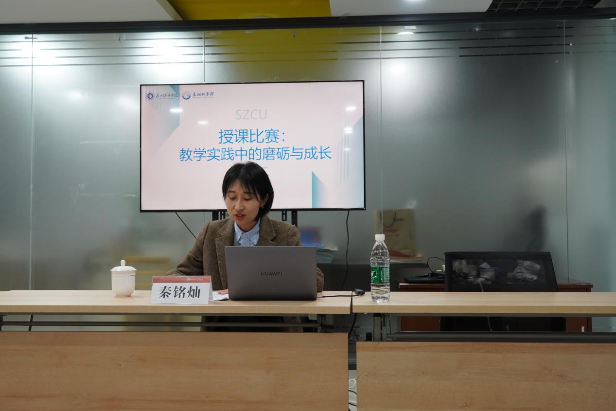 随后,数学基础课青年教师授课竞赛一等奖获得者秦铭灿老师,以“授课比赛:教学实践中的磨砺与成长”为题,与在场教师分享了她的备赛经历和心得体会。秦老师从选题的独到见解出发,详细阐述了教学设计的重要性,特别是如何将课程思政融入教学过程,以及如何通过PPT制作提升课堂吸引力。她还强调了自信心对于教师讲台表现的关键作用,并分享了课后反思对于教学技能提升的重要性。最后,秦老师指出了团队的重要性,是团队的支持与合作让她能够在比赛中脱颖而出。秦老师的分享既有理论深度,又富含实践智慧,为青年教师提供了宝贵的参赛指南和教学策略。