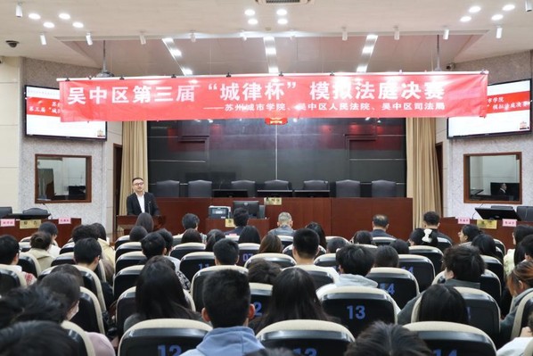 为充分发挥社会主义法治文化的教育熏陶作用,架起法学教育理论与实践的桥梁,强化大学生的法治信仰,深化大学生的法治思维,11月20日下午,苏州城市学院第三届“城律杯”模拟法庭决赛在吴中区人民法院第十法庭举行。