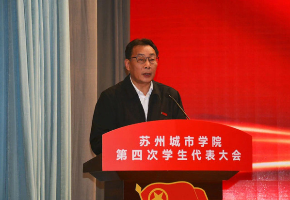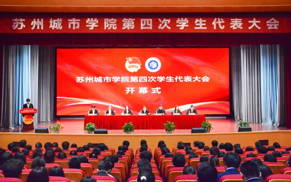苏州城市学院第四次学生代表大会在嘹亮的国歌声中正式开幕。苏州市学联驻会执行主席顾帆代表苏州市学生联合会致辞,他希望苏州城市学院学生会能以此次大会的召开为新的起点,团结引领广大同学坚定不移听党话、跟党走,为实现中华民族伟大复兴的中国梦贡献青春力量。兄弟高校代表苏州大学学生会临时工作组负责人杨晨昕向大会的召开表示祝贺。