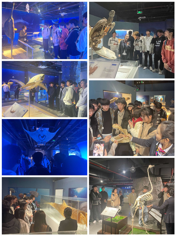 活动伊始,同学们仿佛踏入了神秘的生命殿堂。在各个展厅中,琳琅满目的生物标本与详尽的起源介绍,瞬间点燃了大家关于“生命”的热烈讨论。通过生动丰富的展览内容,同学们深入了解了生命起源、漫长进化历程以及生物多样性产生的根源与奥秘。