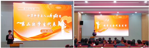 11月25日,计算科学与人工智能学院第二次学生代表大会在3-101教室隆重召开。本次大会邀请到了学生会指导老师费婧怡、校学生会主席团成员刘旭烨及各兄弟学院学生代表出席。