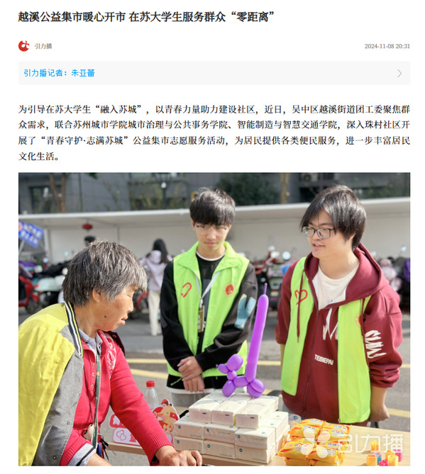 公益筑梦,志愿领航。本次“青春守护·志满苏城”公益集市志愿服务活动实现了在苏大学生为本土社区群众服务“零距离”,是新时代青年大学生志愿服务精神的生动实践,以活动聚民心、用服务暖民心。