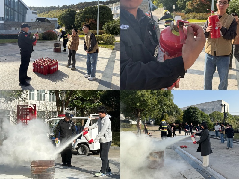 最后,党委保卫部(保卫处)的老师们为大家讲解了灭火器的使用方法,并指导现场师生进行了实战灭火演练。通过亲手操作,师生们更加深入地了解了灭火器的使用技巧,为今后的消防安全提供了有力保障。