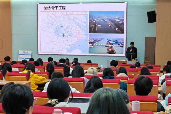 蔡辉首先概述太湖流域以及治太骨干工程情况,介绍了太湖流域水环境综合治理的背景、总体方案、主要工作及成效,同时详细阐释了针对水资源短缺、污染等新老问题所采取的一系列标本兼治的措施以及太湖流域水利安全、水质改善、水资源集约节约利用和依法治水管水等方面取得的成绩。最后,他对当前太湖流域水环境综合治理面临的“引江济太”、高水位抑制水草生长等主要问题进行了剖析,呼吁广大师生密切关注太湖流域生态,积极加入到水资源保护的行动中来。讲座中蔡辉团队还为师生准备了趣味十足的有奖竞猜环节,通过问答式的互动,生动地向同学们展示了太湖流域水治理的成效和苏州的成功治理经验。