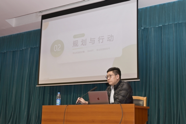 周老师首先向大家展示了一份优秀的学生简历,向大家讲解了如何撰写一份完整的简历。随后,他从学业规划的步骤、制定目标的SMART原则和职业规划书的撰写三个方面,指出时间管理的本质及高效利用时间的重要性,并向同学们讲述了掌握目标设定与分解的方法、职业生涯规划书撰写的基本原则,强调了在职业目标实现的过程中需要同学们根据现实情况对职业目标、职业路径、行动计划做出相应的调整。