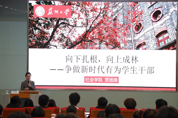 在第二期“青马工程”人才培养计划的第一课中,贾扬娣围绕如何成为一名优秀的学生干部展开授课与指导。她着重指出,要成为一名优秀的学生干部,首先务必明确自身的角色定位,着力培养良好的综合素质,妥善处理好各类人际关系。她还积极鼓励学生干部采用进阶式能力提升的方法策略,逐步加强基础技能、专业能力、领导力以及综合素质的全方位提升。