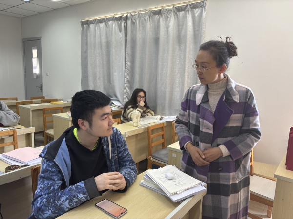 在活动中,周高亲切询问了考研教室中同学们的复习进度和生活状况。尹维军和李惠娟了解了同学们的备考进度和未来规划,向同学们给予了鼓励。同时,他们也指出要调整心态,做到劳逸结合,争取以最佳状态迎接考试。