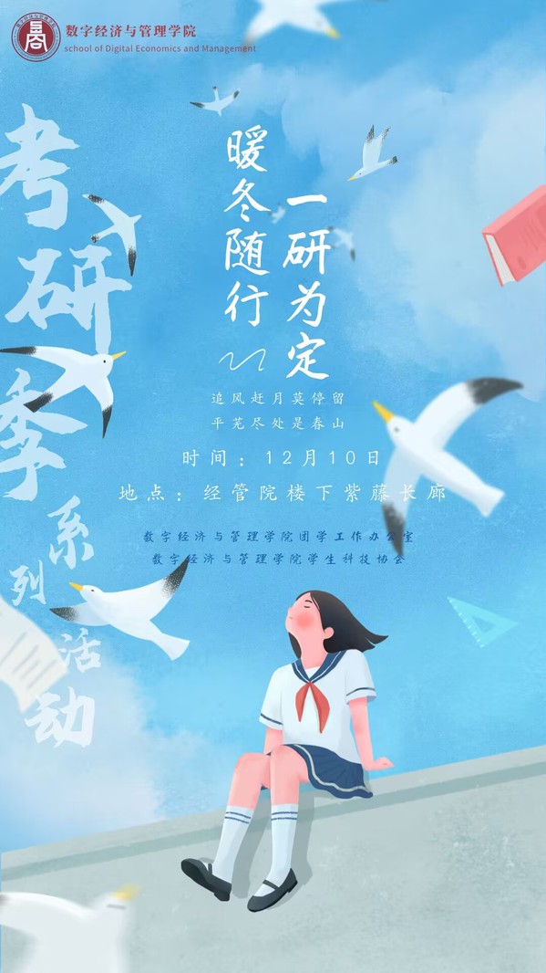 此外,12月10日,学院将在紫藤长廊开展考研祝福活动,欢迎备考的经管学子积极参加,在紧张备战的同时,可以劳逸结合,放松身心。