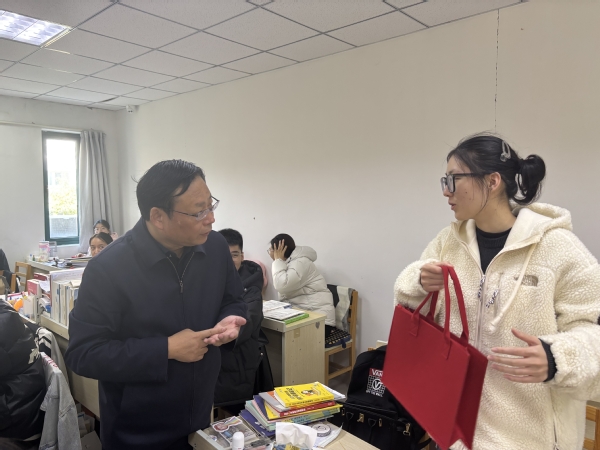 为帮助经管学子坚定目标、调整心态、增强信心,11月29日,校党委常委、副校长、数字经济与管理学院院长(兼)周高,学院党委副书记尹维军,副院长李惠娟以及专职辅导员一同前往研习楼,向2025届正在全力以赴备考的经管学子送上亲切的问候与温暖的祝福,并为他们分发了精心准备的考研慰问品。