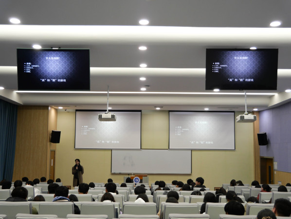青年戏剧者漫谈环节,青年话剧演员、SKY话剧社前社长汪辰彬以“戏剧是真实与虚假的游戏”为切入点,用独特的见解和丰富的经验,带领同学们深入感受到戏剧世界的奇妙之处,现场反响热烈。