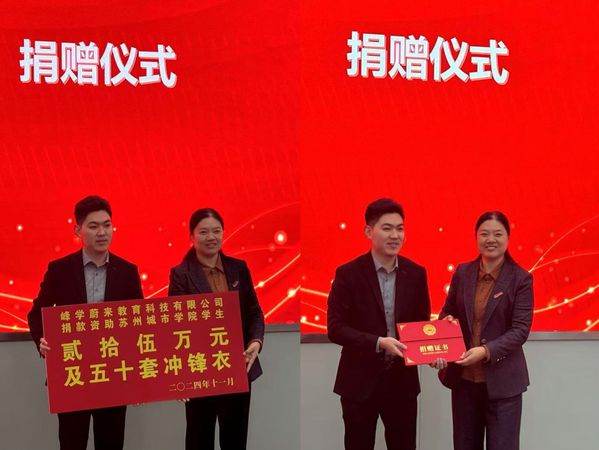 仪式结束之后,峰学蔚来教育科技有限公司为受助学生发放了捐赠的50件冲锋衣。此次捐赠活动的举办,使广大学子感受到来自社会企业爱心助学的正能量,为他们指明了人生道路与奋斗方向,充分展现了我校资助工作以学生为中心的服务理念,有力地推动了发展型资助育人工作体系持续优化与高质量提升。