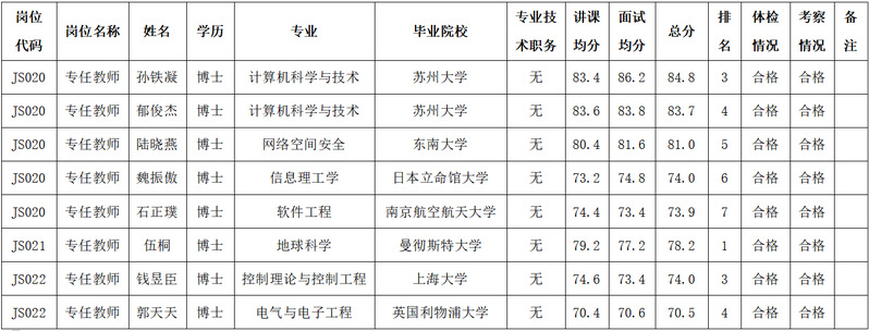 根据《苏州城市学院2024年度下半年高层次人才招聘公告》,经过试讲、面试考核、资格复审、心理测试、体检、政审等程序,拟录用以下8名同志,现公示如下: