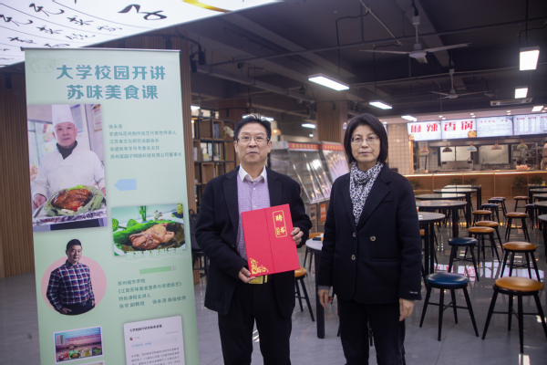 此次徐永清走进大学课堂,不仅为学生们带来了精彩的非遗技艺展示,也与课程主讲人张宇副教授进行了深入的交流与合作。张宇表示,课程依托‘2024年度江苏省社科应用研究精品工程社会教育(社科普及)专项课题重点资助项目《社科普及与中华优秀传统文化融合案例研究——以江南文化与时令美食品牌塑造为例》’进行创新教改,本次课程非常荣幸能够邀请到非遗技艺传承人徐永清走进课堂,他的经验和技艺对于学生们来说是一笔宝贵的财富。通过与徐永清的合作与交流,可以尝试将非遗技艺与现代教育理念相结合,共同探索出一条具有苏州特色的产教融合之路。”