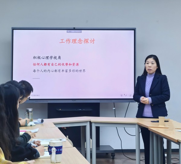 会议伊始,苏州大学大学生心理健康教育研究中心副教授王平就《心理名师工作室的建设与作用发挥》作主题分享。她从心理名师工作室的工作理念、工作目标以及工作室建设等三个核心方面深入展开论述,从实际工作场景出发,提出了一系列极具可操作性的方法与策略,为我校心理名师工作室的后续建设与优化指明了方向。
