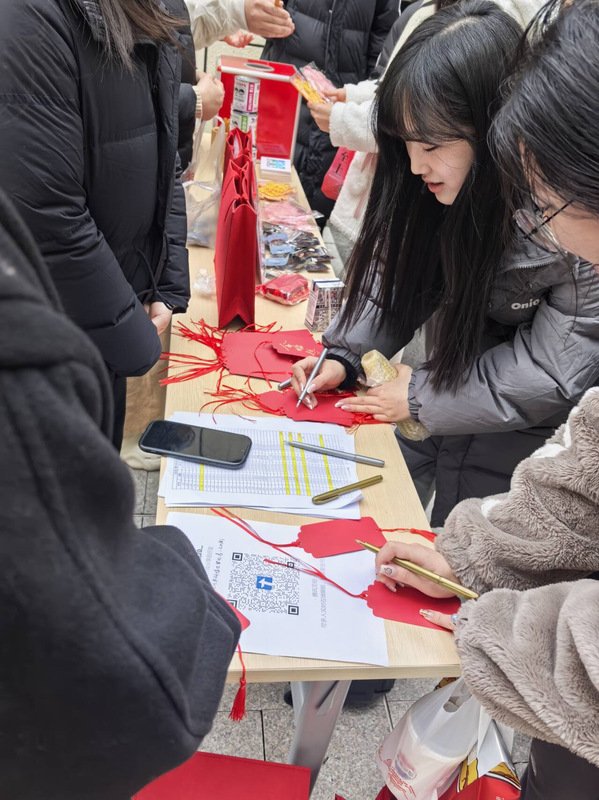 此外,为了增加活动的趣味性和互动性,学院特别准备了丰富的礼品,主要有易拉扣,小盆栽,不织布挂件等。每位参与挂心愿签的学生都有机会参与抽奖,赢取属于自己的幸运礼品。