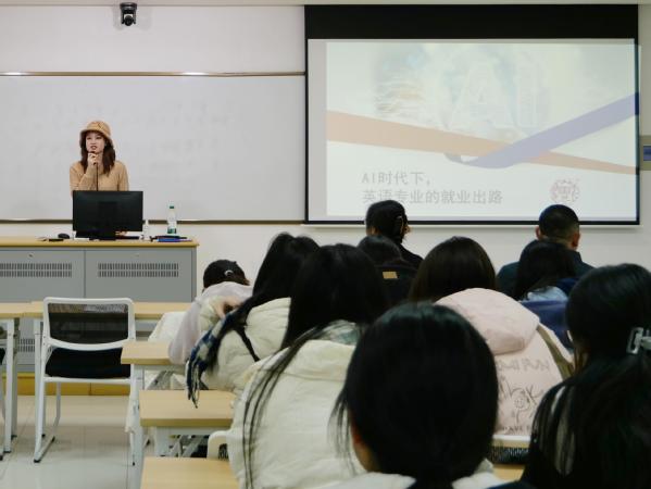 为进一步推进产教深度融合,拓宽协同育人平台,帮助学生树立正确的就业观并制定个性化的职业发展规划,12月11日下午,城市文化与传播学院联合招生就业处、“一站式”学生社区知行社区(第二社区)特邀复旦大学、华东师范大学等多所“双一流”院校兼职导师张丽,于综合楼122举办《AI时代下,英语职业规划与职业素养》——就业领航公开课。城市文化与传播学院院长助理孙少华、团委副书记徐宁、英语专业学生代表、2024级中美学分互认联合培养项目班全体学生参加本次讲座。