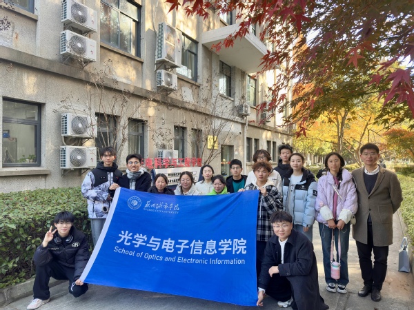 为进一步提升应用型人才培养质量,引导学生了解专业发展方向、明晰个人目标,12月15日,光学与电子信息学院副院长、24电子第一班主任钱敏,班主任张鹏远带领电子信息科学与技术专业新生前往苏州大学光电科学与工程学院开展研学交流活动。