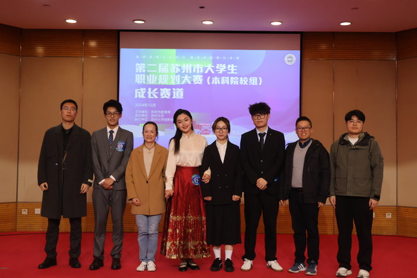 本次决赛以“筑梦青春志在四方,规划启航职引未来”为主题,由苏州市教育局主办,苏州大学承办。经过校赛选拔、复赛评审,共有6所学校21名学生入围决赛,成长赛道11人、就业赛道10人。决赛现场成长赛道包括主题陈述和评委提问两个环节,就业赛道包括主题陈述和综合面试两个环节。经过激烈角逐,我校2022级汉语言文学专业学生王玥晗和2022级通信工程专业学生魏佳宝分别荣获成长赛道一等奖、三等奖,2021级计算机科学与技术专业学生殷华君和2022级法学专业学生张欣洁分别荣获就业赛道二等奖、优胜奖。