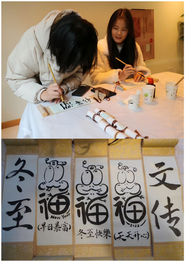 笔端凝情,墨韵亲书。书法体验区域,同学们手执毛笔,饱蘸浓墨,于宣纸上挥毫泼墨,每一笔一画皆是对冬至时光的深情镌刻。在书写的过程中,同学们不仅能够感受书法艺术的魅力,还能将自己的真挚情感通过文字传递给每一个人,为整个活动增添了文化气息。