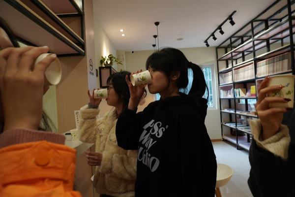 轻酌冬酿,香韵盈口,此外,本活动还提供了苏州特色冬酿酒供同学们品尝。冬酿酒,这一承载着团圆与祈福美好寓意的传统饮品,以其金黄色的诱人色泽、桂花的馥郁香气及甜润的口感,成为了冬至夜不可或缺的一部分。同学们在轻松愉悦的氛围中,细品这份来自苏州冬至的醇厚与温暖。