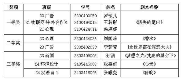 根据《关于举办苏州城市学院“沉浸式”心理剧本大赛的通知》(学字〔2024〕134号)要求,经个人申报、材料审核及专家评审,现将评比结果公示如下: