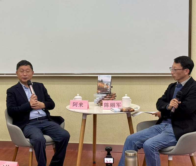 随后,阿来、陈丽军二位老师通过对谈的形式向在场读者分享了关于这部新著背后的创作故事以及阿来老师关于文学与心灵、人性、自然与时代交织关系的深度洞察。作为中国最早的行走文学践行者之一,阿来老师在行走中发现了旷野诗意、诗性、诗心与诗情,将个人融入旷野,让旷野展露出如人一般的习性和历史,进而生长出文学。翻开《去有风的旷野》,可以发现“旷野”并非遥不可及,就隐藏在日常生活的缝隙里,等待所有人去发现去探索。