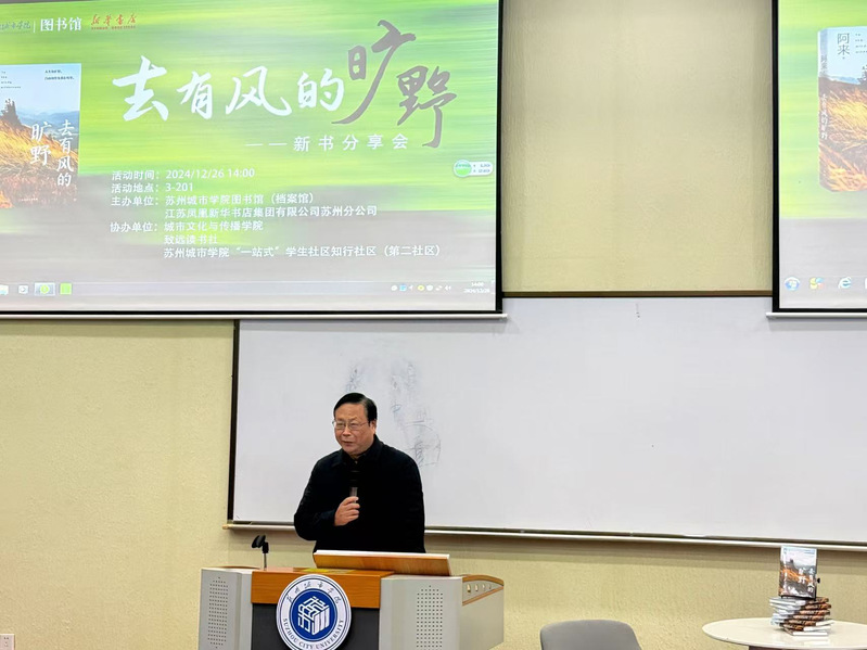 12月26日下午,阳光斜洒、书香四溢,我校迎来了一场别开生面的文学盛宴。茅盾文学奖获得者、著名作家阿来老师,携其匠心之作《去有风的旷野》,在3号楼201教室成功举办了一场充满思想碰撞与文学魅力的新书分享会。