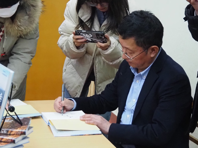 在本次新书分享活动即将圆满落幕之际,现场的文学氛围达到了沸点,众多读者排起了长队,阿来老师以极大的热情为读者亲笔签名留念,为这场文化交流活动画上了温馨而圆满的句号。