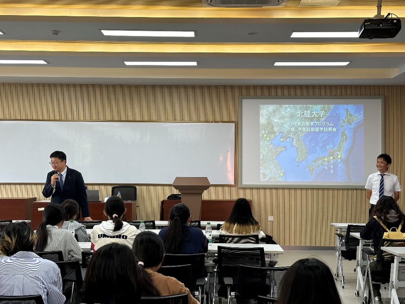 10月9日下午,日本北陆大学国际交流中心副处长中岛元春、科长付超一来校开展《日本北陆大学双学位及交换生项目宣讲会》,就日本国家概况、北陆大学概况、双学位及交换生项目、和日本升学就业及生涯规划等方面内容作详细介绍。