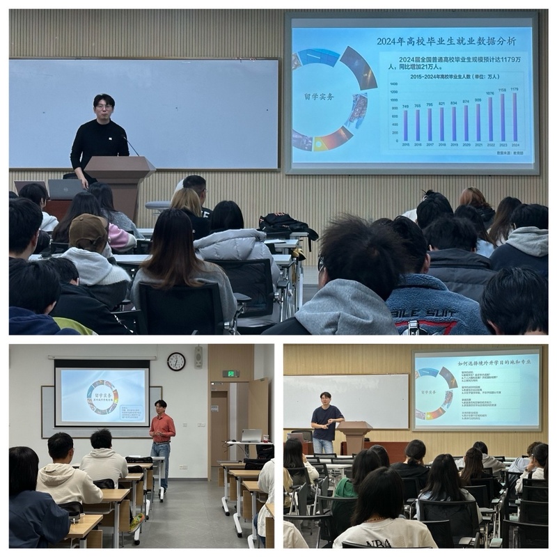 10月至12月期间,我校邀请金世达留学服务有限公司负责人林盛及其团队来校开展《境外升学及生涯规划指导》系列讲座,分别举办文科专业场、工科专业场、及中外合作办学专业生涯规划讲座。金世达留学服务有限公司何鹏老师就生涯规划及境外升学方向、境外名校录取要求及规划等方面内容,为我校学生提供详细分析与指导。