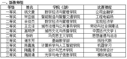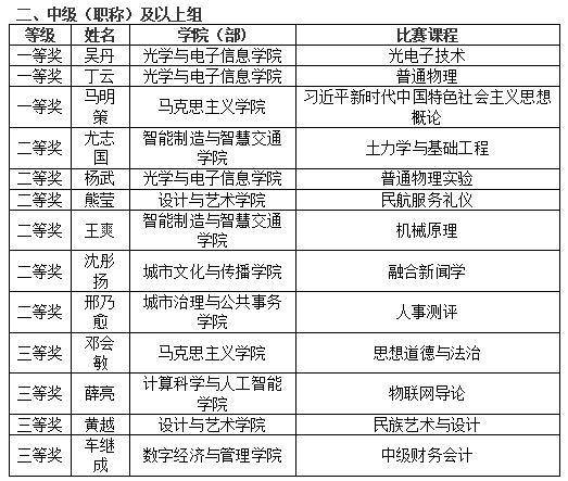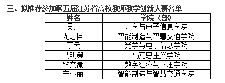 根据《关于举办第四届苏州城市学院教师教学竞赛暨第五届江苏省高校教师教学创新大赛选拔赛的通知》(教字〔2024〕231号)文件精神,经各学院(部)推荐,教务处组织初审合格的教师参赛,经评审专家组评议,本次竞赛拟获奖名单如下: