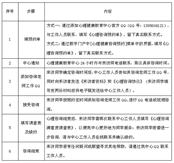 (1)通过添加心理健康教育中心官方QQ进行线上预约(名称:心理健康教育中心线上咨询;QQ号:1395606121)。